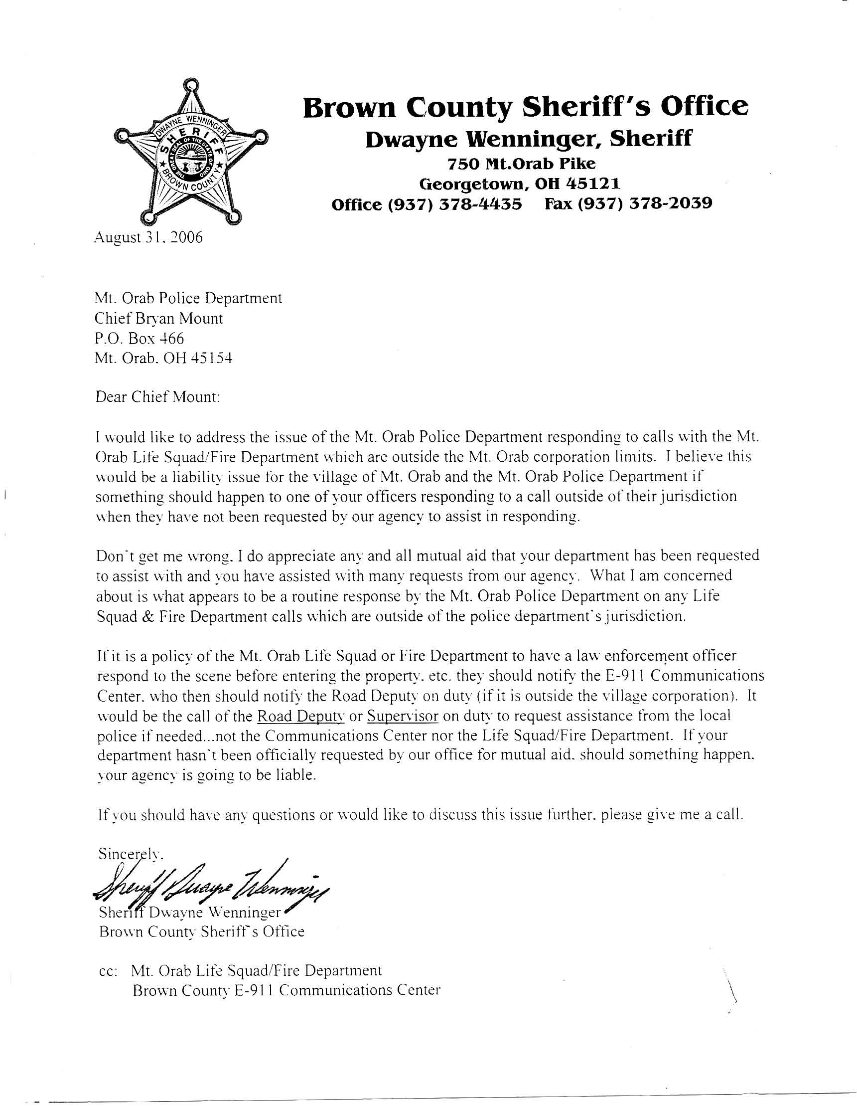 Question/Comment: I used to live in Mt. Orab. Sheriff