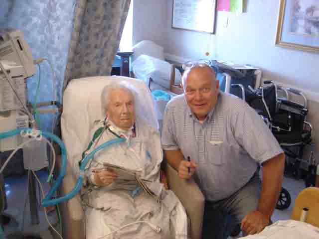 Stopped in today to see Lola Fry (93) at the Regency Hospital in the Deaconess Hospital complex across the street from the University of Cincinnati. Took her today's Democrat and Press. She is in Room 469 on the 4th Floor. There is convenient parking across the street from the hospital in a large parking garage. I'm sure she would appreciate seeing old friends stop in to visit. Lola's mind is still sharp as a tack! She cannot talk unless they do something with the many tubes that are supplying oxygen to her. She could not talk to me today, but she could write down answers. She told me that she was a member of the Mount Orab VFW for 70 years. Lola wanted an absentee ballot voters form so she could vote. Imagine that. A 93 year old woman who is laid up in a hospital bed finds it important to vote, whereas so many others can't find the time to take part in their basic civic duty to vote. The last time I saw Lola in the Brown County General Hospital, she woke up from a sleep right after I entered her room. After a few seconds, she made the statement, "Nothing works anymore," referring to her body functions. What a sense of humor, even in her condition at that time. At her age she still has the best outlook on life anyone could imagine. Go visit her while you still have the opportunity to do so. I know she will appreciate you stopping by to see her. I saw a line of people outside the funeral home in Ripley yesterday. There must have been over 100 people waiting in line for hours. I wondered how many of them actually got to visit with the deceased person prior to his/her death, when the person could have still personally enjoyed their company? It must be pretty hard to spend day-after-day in a hospital bed with dozens of tubes running in and out of your body, without anyone stopping by to visit. Lola did not make the Brown County Fair parade this year because she was in the hospital. I don't think she will be in next year's parade either because time is not slowing down. It's time to go see her while you can. Make her day.