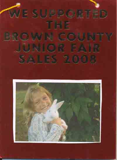 AT THE BROWN COUNTY JR. FAIR AUCTION My wife, Judith, and I think that 4-H is one of the best things for our youth to help teach them solid values, like responsibility, etc. We wholeheartedly support the Junior Fair.